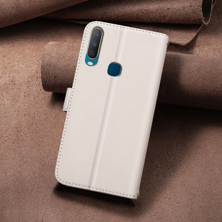 Para Vivo Y11 / Y15 / Y12 / Y17 Funda para Teléfono de Cuero con Textura Cuadrada (Beige)