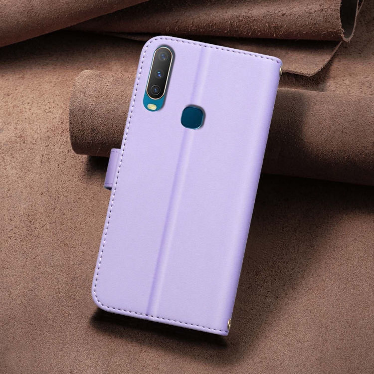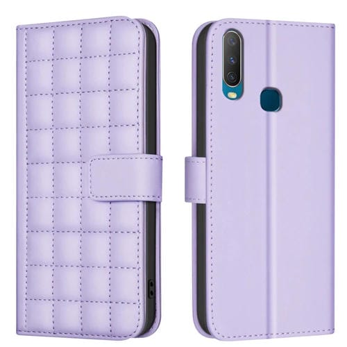 Para Vivo Y11 / Y15 / Y12 / Y17 Funda para Teléfono de Cuero con Textura Cuadrada (Púrpura)