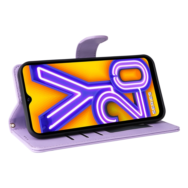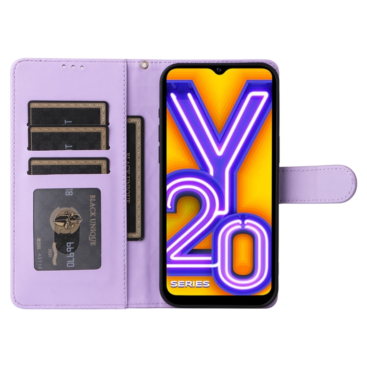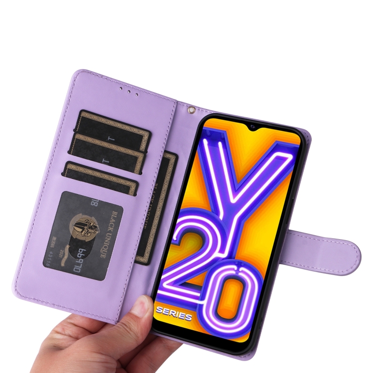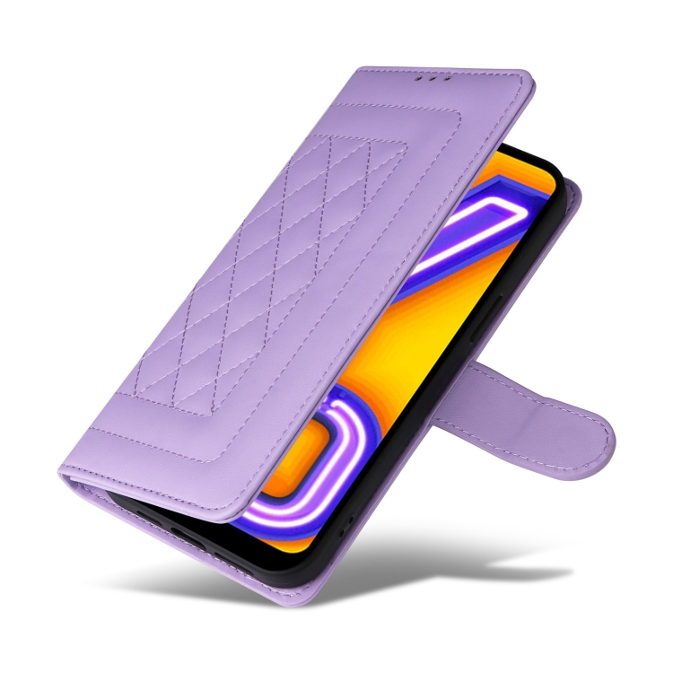 Para Vivo Y20 / Y20I Funda para Teléfono con Tapa de Cuero Diamond Lattice (Púrpura Claro)