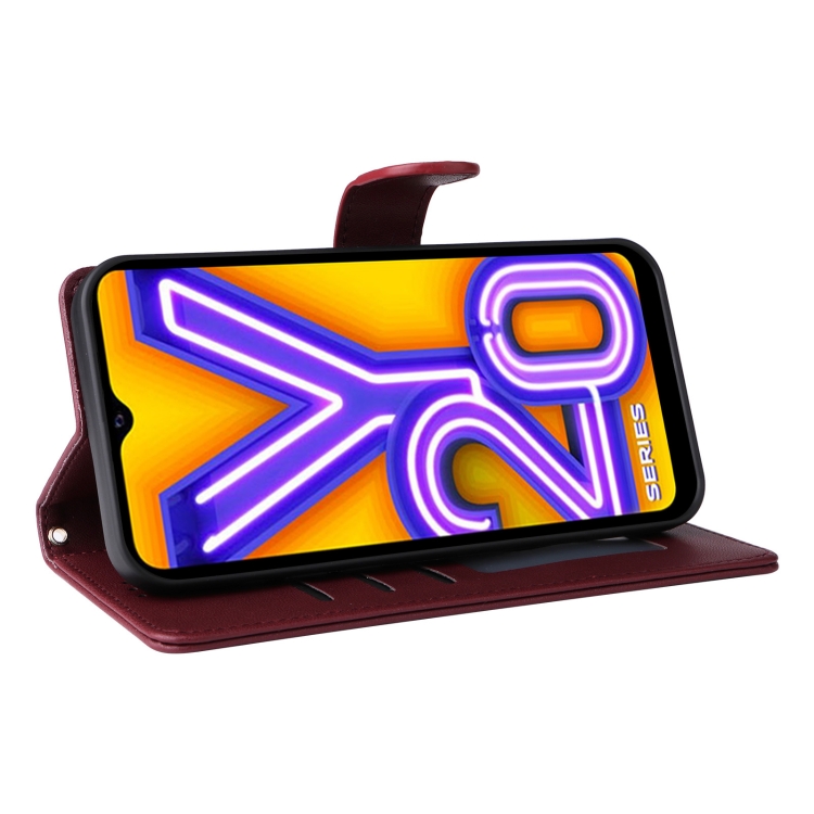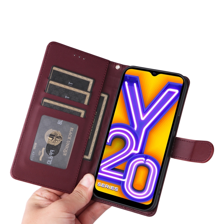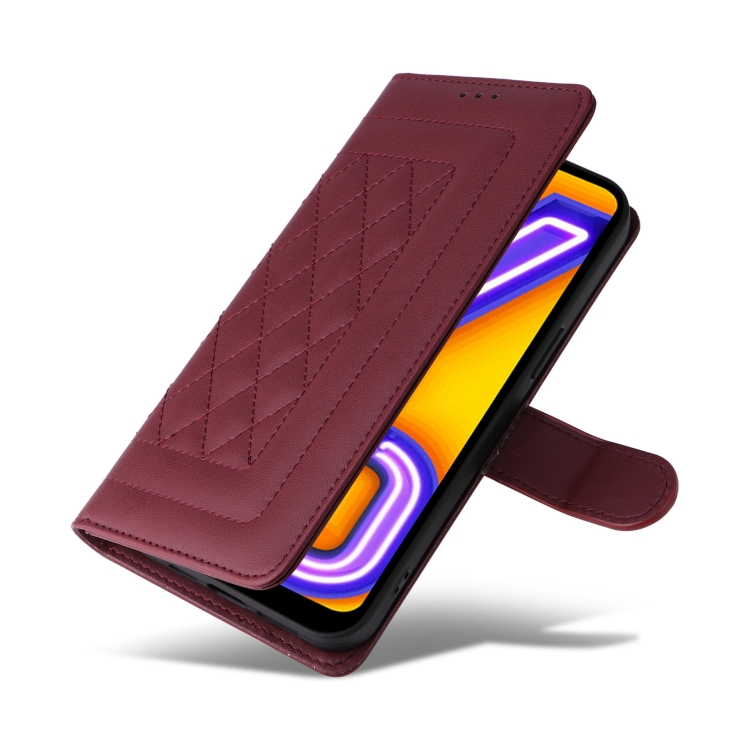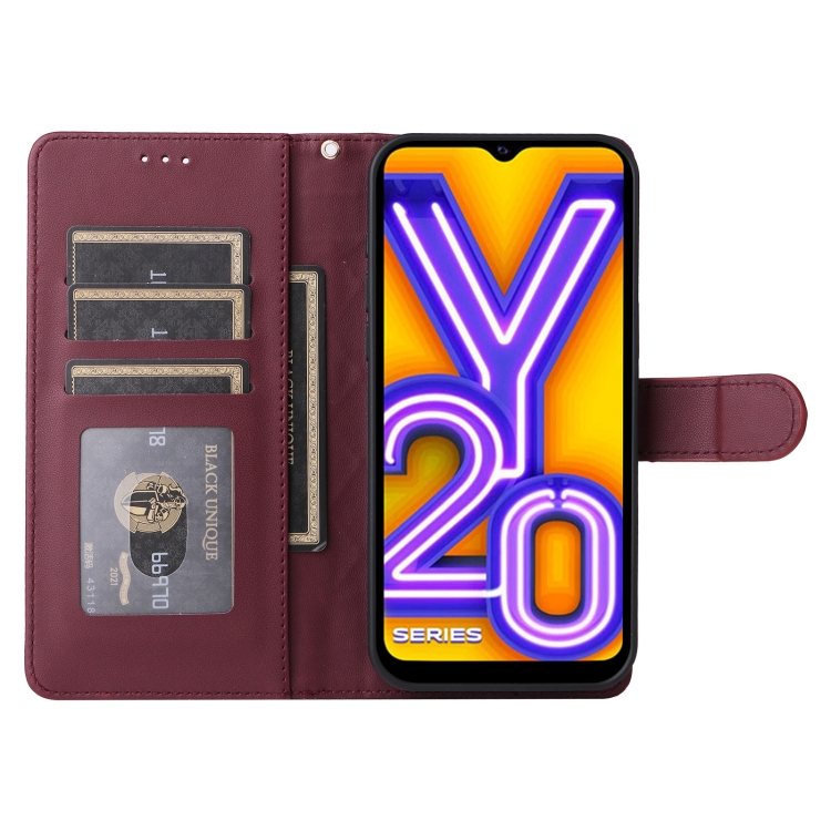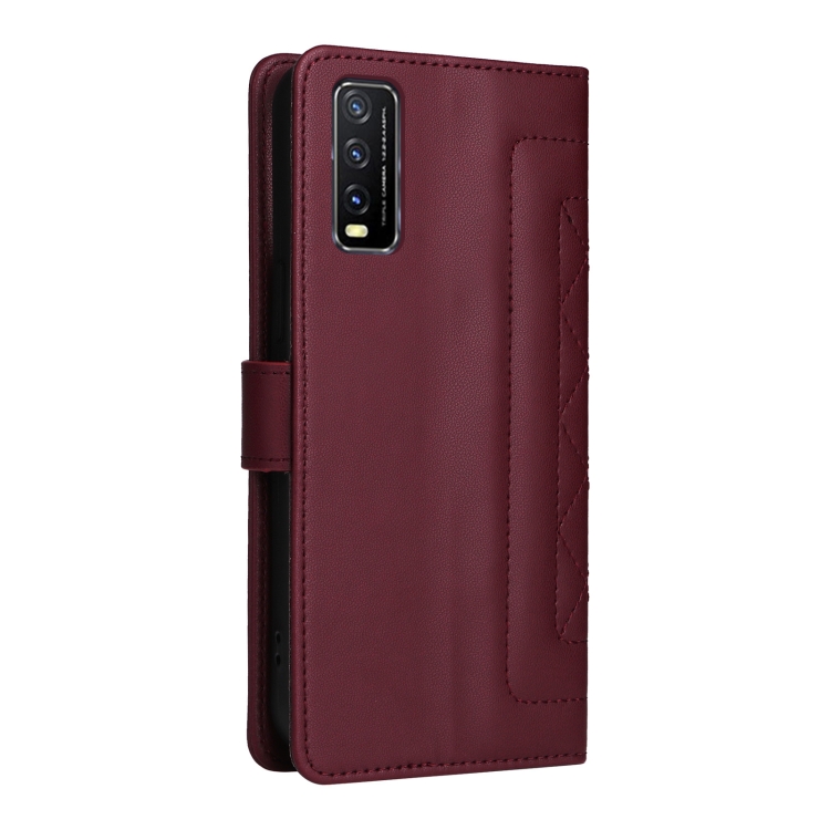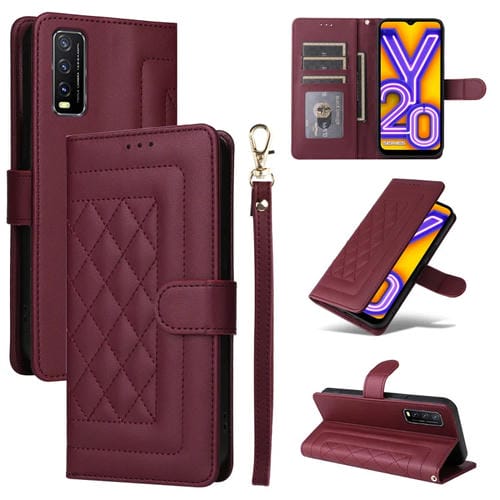 Para Vivo Y20 / Y20I Funda para Teléfono con Tapa de Cuero Diamond Lattice (Rojo Vino)