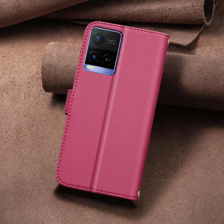 Para Vivo Y21 / Y21S / Y33S Funda para Teléfono de Cuero con Textura Cuadrada (Rojo)