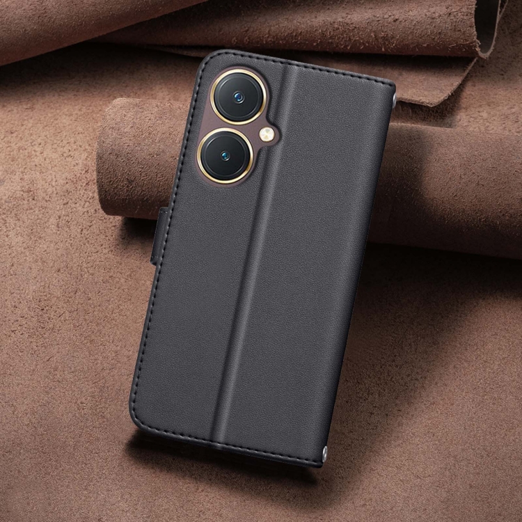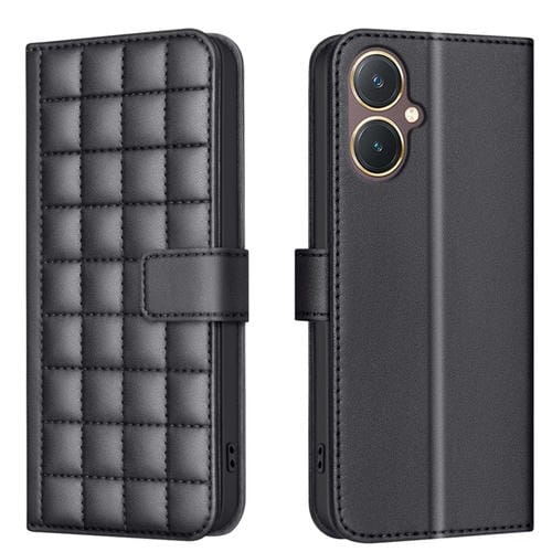 Para Vivo Y27 4G Funda de Cuero con Textura Cuadrada (Negro)