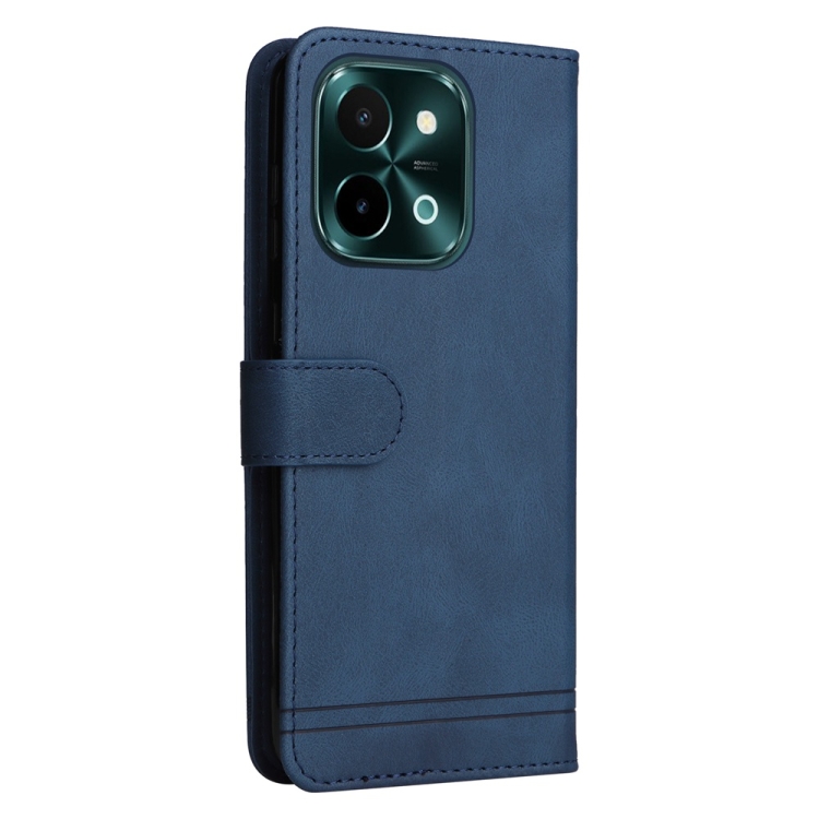 Para Vivo Y28 4G Global Skin Feel Life Tree Funda de Cuero con Botón de Metal (Azul)