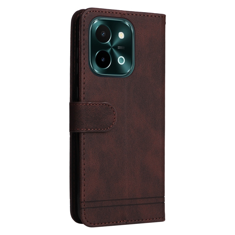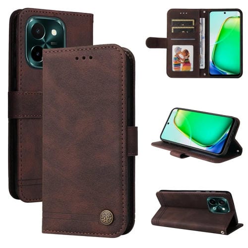 Para Vivo Y28 4G Global Skin Feel Life Tree Funda de Cuero con Botón de Metal (Marrón)