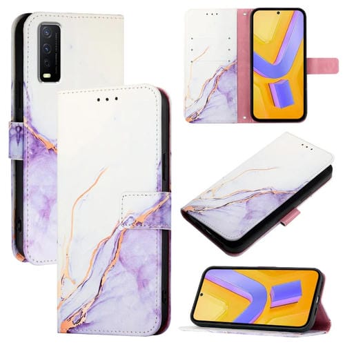 Para Vivo Y30 4G Global Pt003 Funda para Teléfono de Cuero con Tapa con Patrón de Mármol (Blanco y Morado)