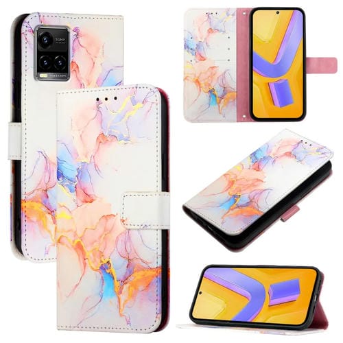 Para Vivo Y33S 4G Global / Y21 2021 / Y21S Pt003 Funda de Cuero con Tapa con Patrón de Mármol (Blanco Mármol)