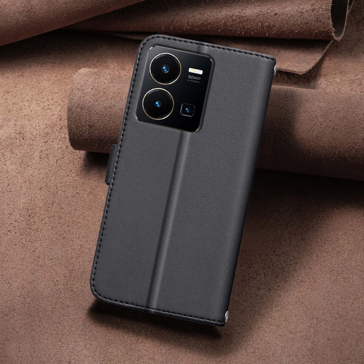 Para Vivo Y35 4G / Y22S Funda de Cuero para Teléfono con Textura Cuadrada (Negro)