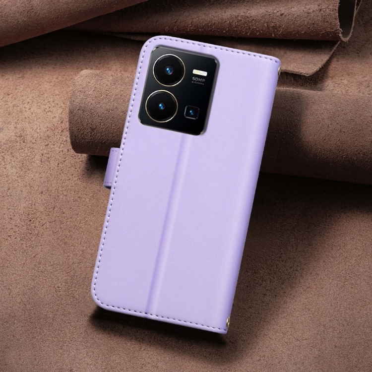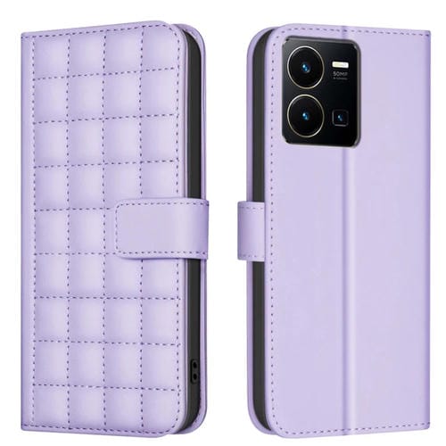 Para Vivo Y35 4G / Y22S Funda de Cuero para Teléfono con Textura Cuadrada (Púrpura)