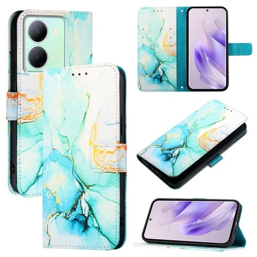 Para Vivo Y36 5G Global / Y36 4G Global&India Pt003 Funda para Teléfono de Cuero con Tapa con Patrón de Mármol (Verde)