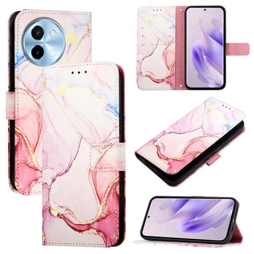 Para Vivo Y38 5G Pt003 Funda de Cuero con Tapa con Patrón de Mármol (Oro Rosa)