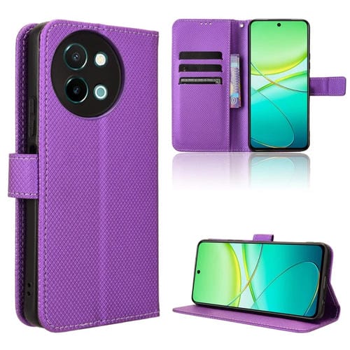 Para Vivo Y38 5G / Y200I 5G Funda de Cuero para Teléfono con Textura de Diamante (Púrpura)