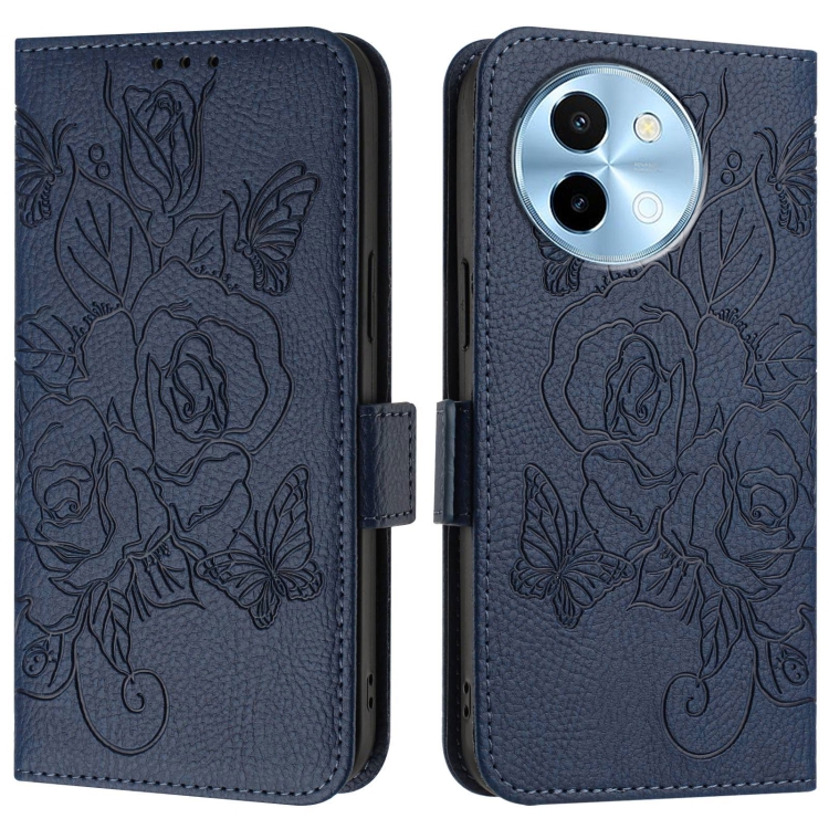 Para Vivo Y38 5G / Y200I / T3X 5G Funda para Teléfono de Cuero Antirrobo Rfid con Relieve Rosa (Azul Oscuro)