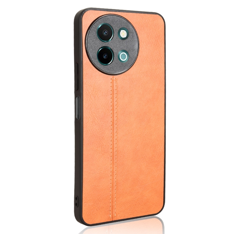 Para Vivo Y38 / Y200I Funda para Teléfono con Bolsa para Tarjetas de Costura con Patrón de Vaca (Naranja)