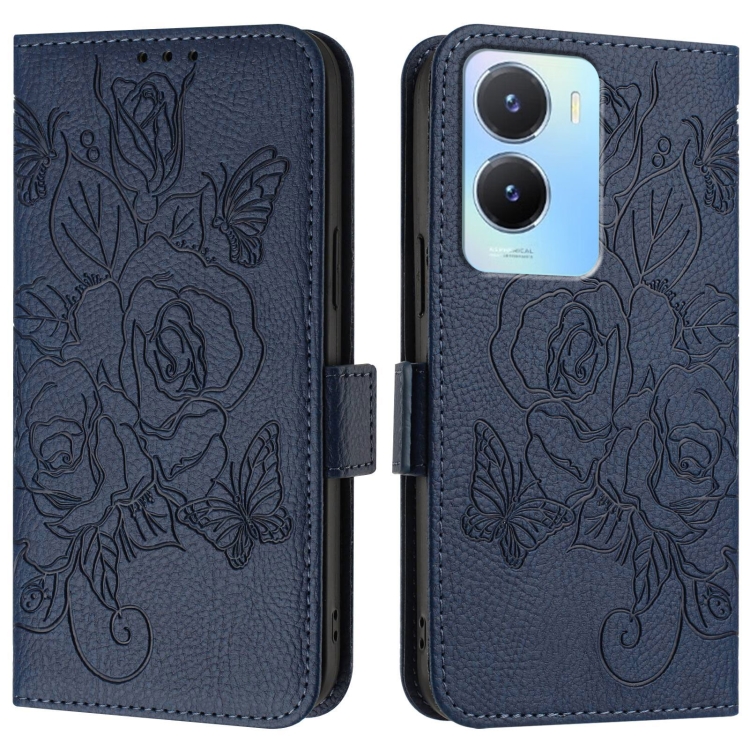 Para Vivo Y56 5G / Y16 / Y02S Funda para Teléfono de Cuero Antirrobo Rfid con Relieve Global (Azul Oscuro)