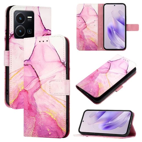 Para Vivo Y77 5G Global / Y77E 5G Pt003 Funda para Teléfono de Cuero con Tapa con Patrón de Mármol (Rosa, Morado y Dorado)