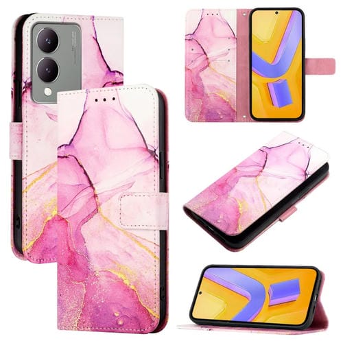 Para Vivoy Y17S 4G Global / Y17S 5G India Pt003 Funda de Cuero con Tapa con Patrón de Mármol (Oro Rosa Púrpura)
