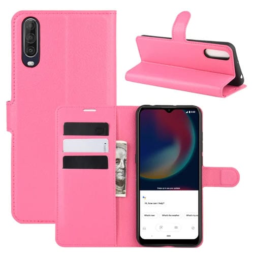 Funda Protectora Wiko View 4/4 Lite con Tapa Horizontal, Soporte, Ranuras para Tarjetas y Billetera (Rosa Roja)