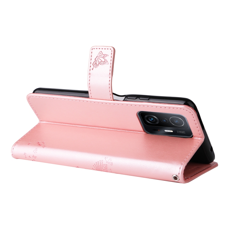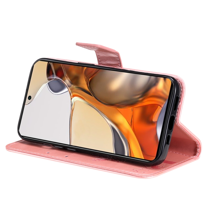Para Xiaomi 11T / 11T Pro Tree & Cat Pattern Horizontal Flip PU Funda de cuero con soporte y ranuras para tarjetas y Billetera y cordón (oro rosa)