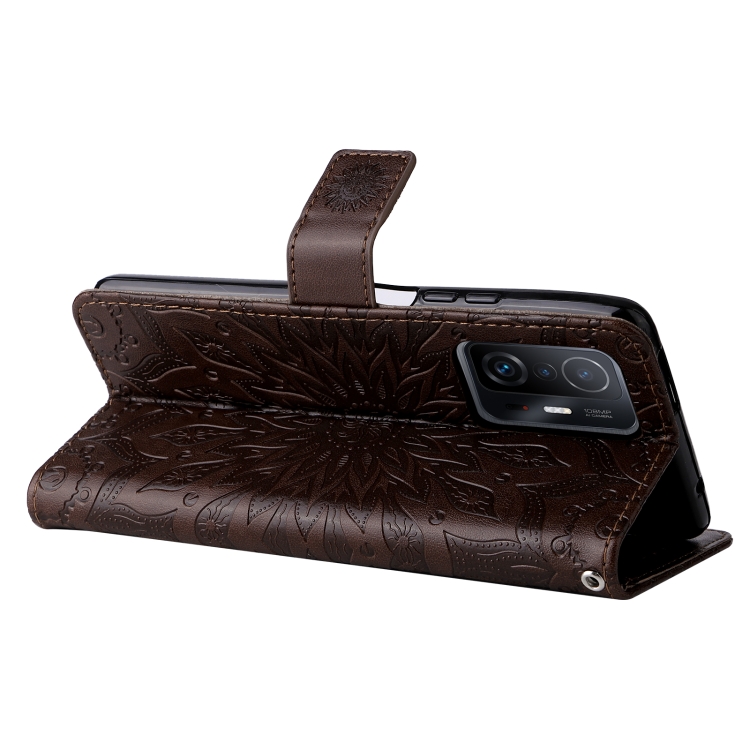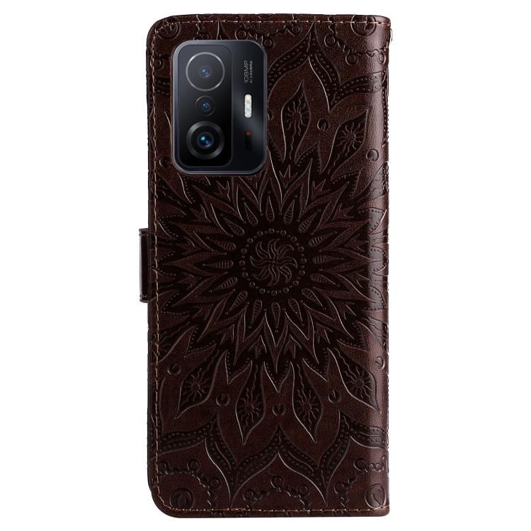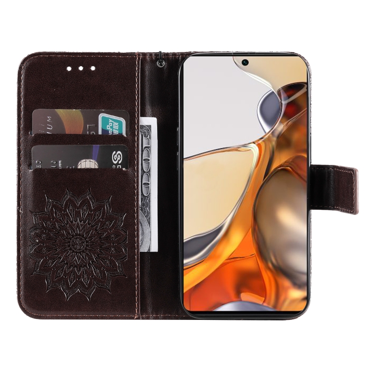 Para Xiaomi 11T / 11T PROPLIZADO PRO PULSADO Patrón de girasol Horizontal Flip PU Funda de cuero con soporte y tragamonedas y billetera y cordón (marrón)