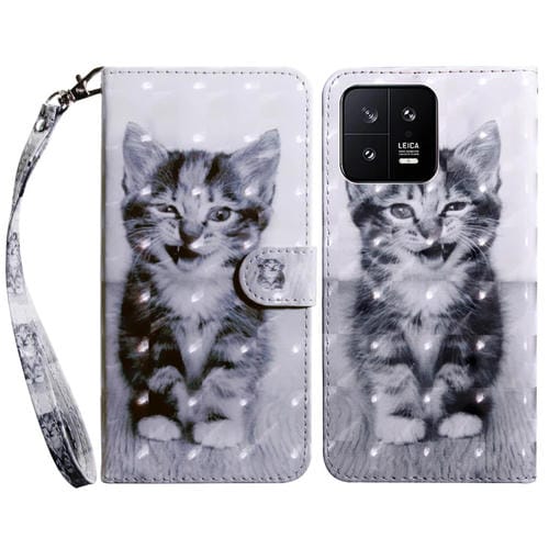 Para Xiaomi 13 Estuche para Teléfono de Cuero con Patrón Pintado En 3D (Smile Cat)