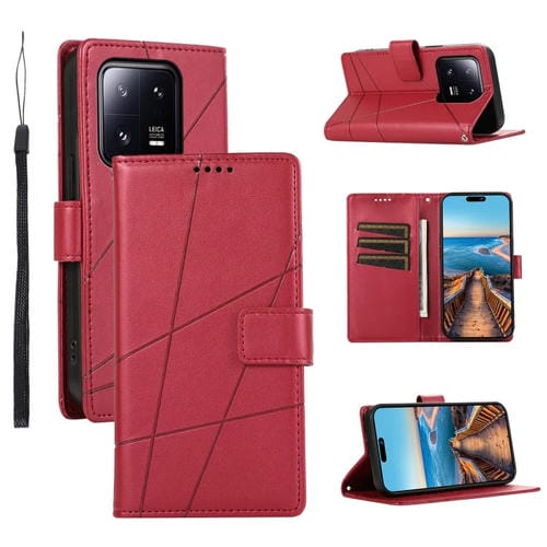 Para Xiaomi 13 Pro Pu Funda de Teléfono con Línea En Relieve con Textura de Cuero Genuino (Rojo)