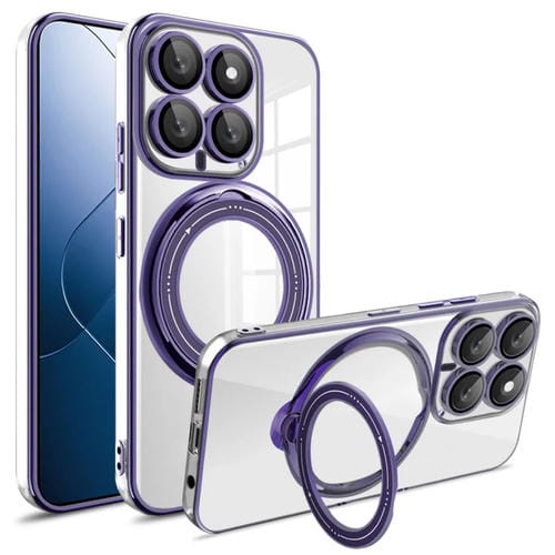 Para Xiaomi 14 Galvanoplastia Magsafe Soporte De Rotación De 360 Grados Funda Para Teléfono A Prueba De Golpes (Púrpura Oscuro)