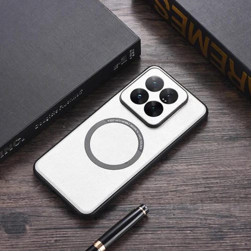Para Xiaomi 14 Pro Cloth Texture Pu Magsafe Funda Para Teléfono Magnético (Blanco)