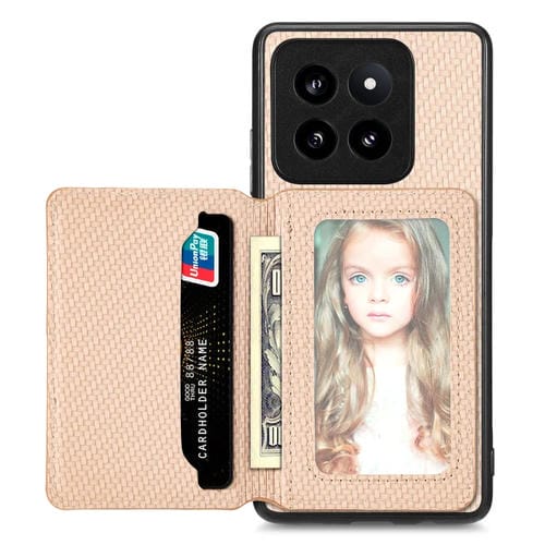 Para Xiaomi 14 Pro Funda Para Teléfono Con Bolsa Para Tarjeta Magnética De Fibra De Carbono (Caqui)
