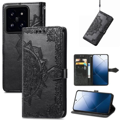 Para Xiaomi 14 Pro Mandala Flower Funda De Cuero Para Teléfono En Relieve (Negro)