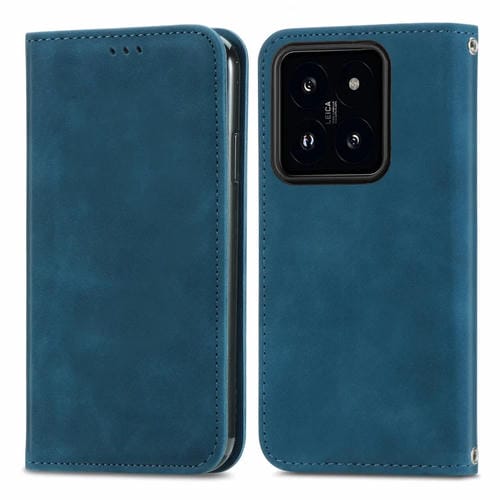 Para Xiaomi 14 Pro Retro Skin Feel Funda De Teléfono De Cuero Con Tapa Magnética (Azul)