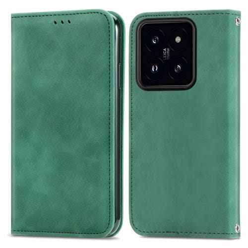 Para Xiaomi 14 Pro Retro Skin Feel Funda De Teléfono De Cuero Con Tapa Magnética (Verde)