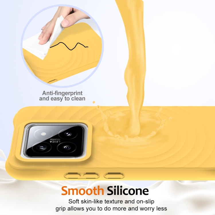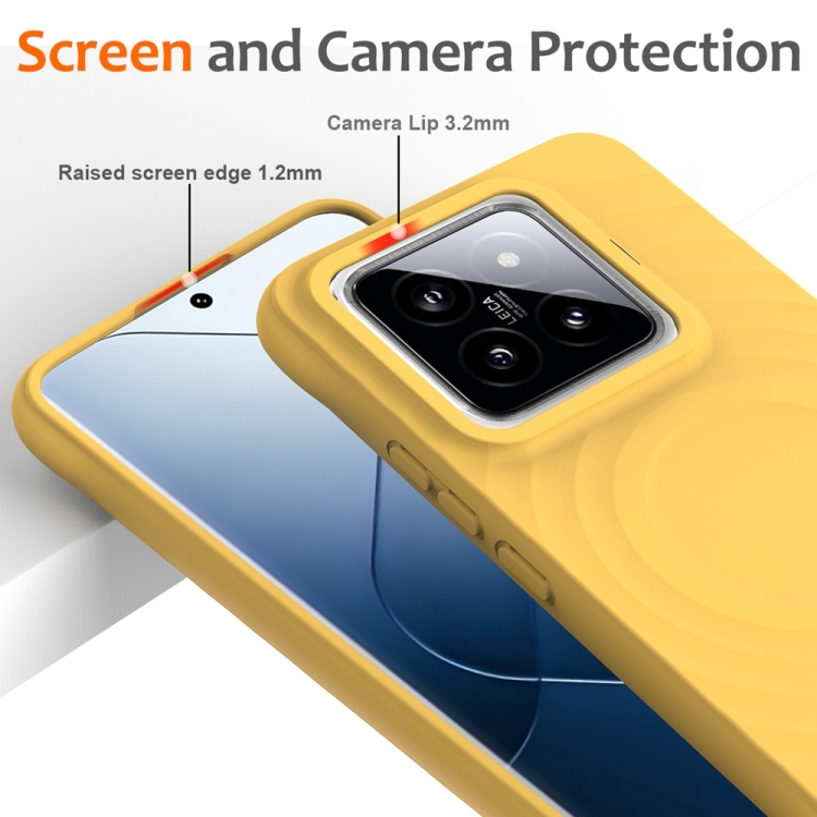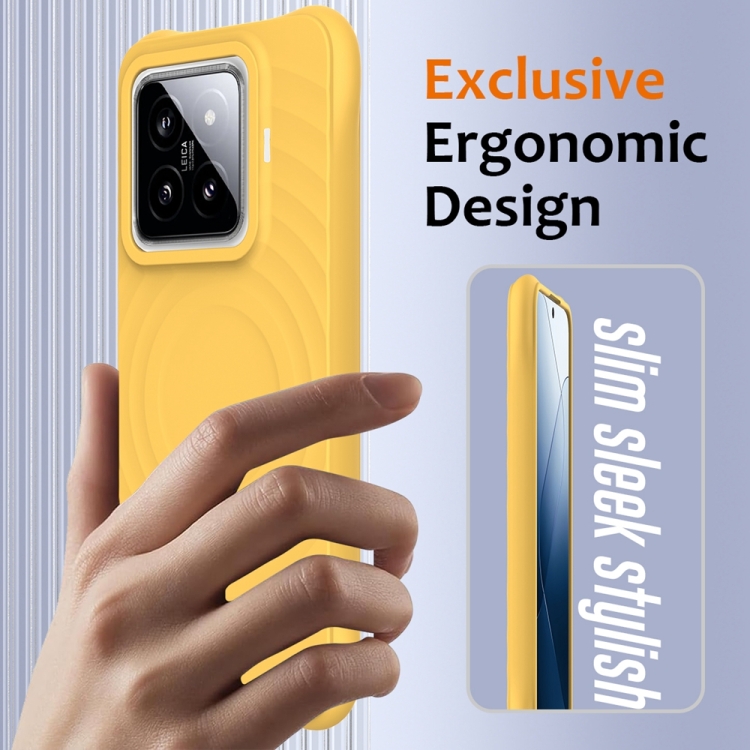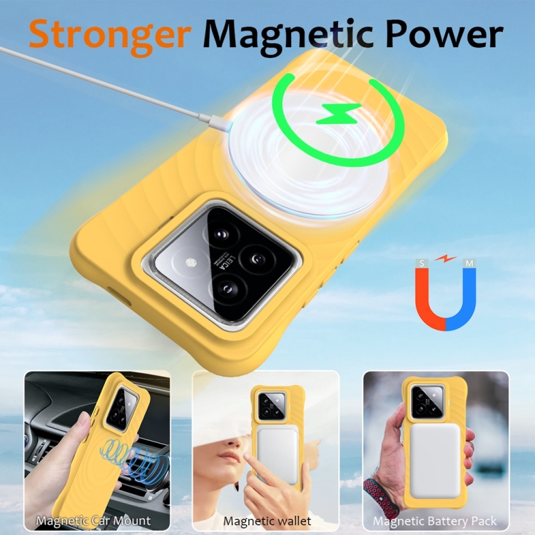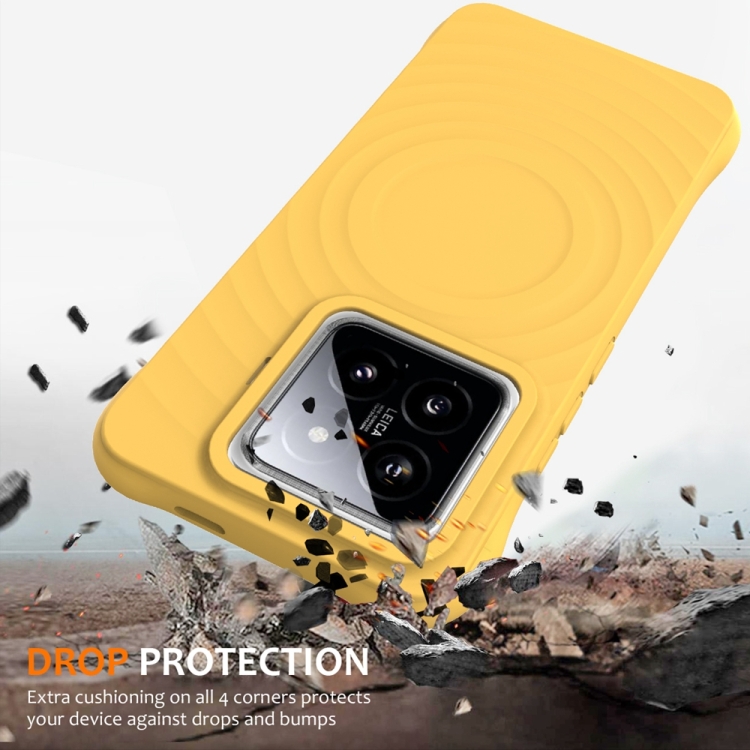 Para Xiaomi 14 Pro Wave Texture Magsafe Funda De Teléfono De Silicona Líquida Magnética (Amarillo)