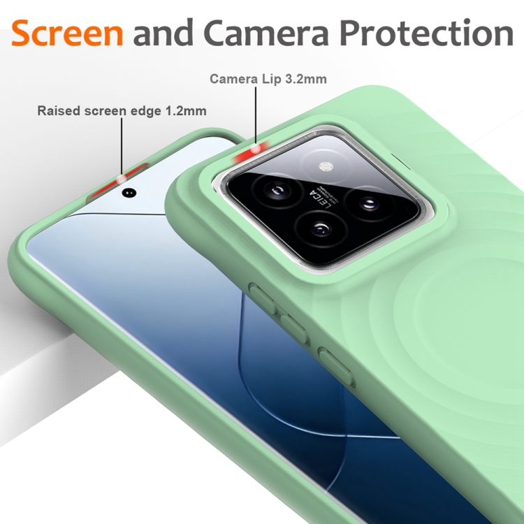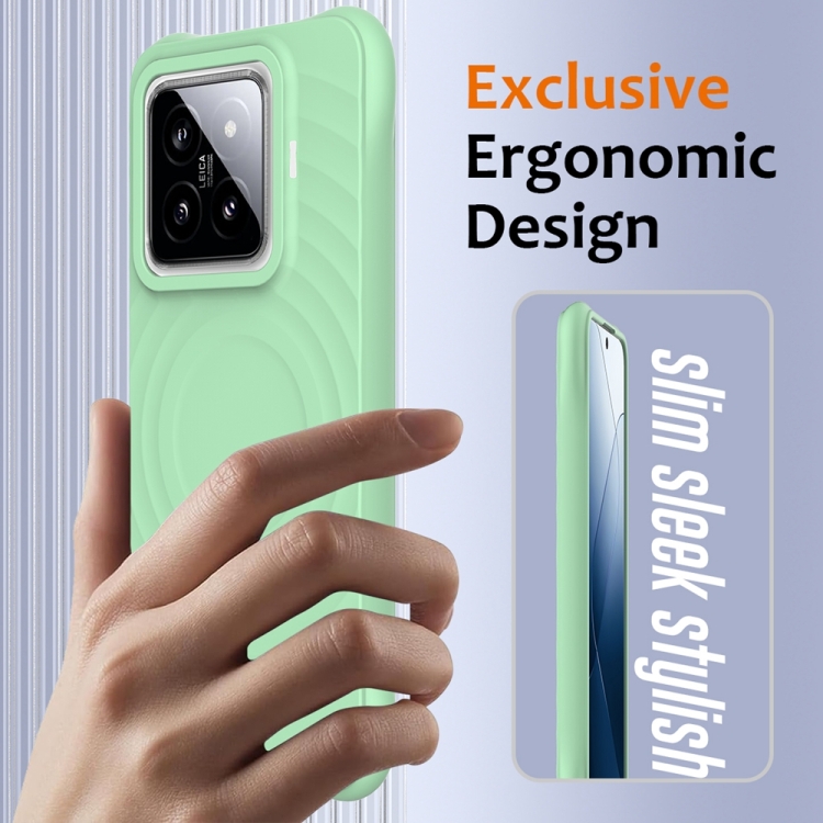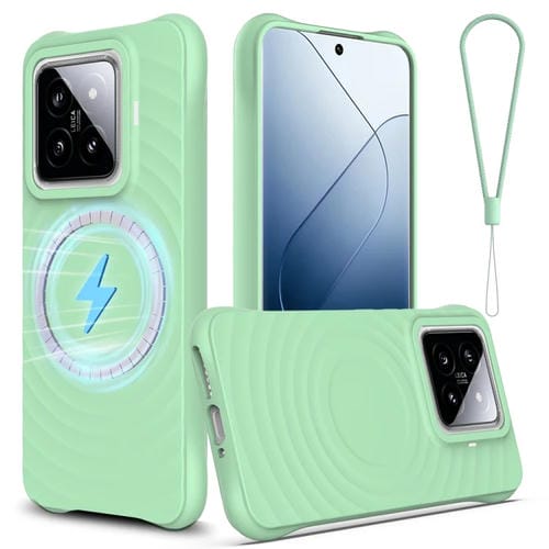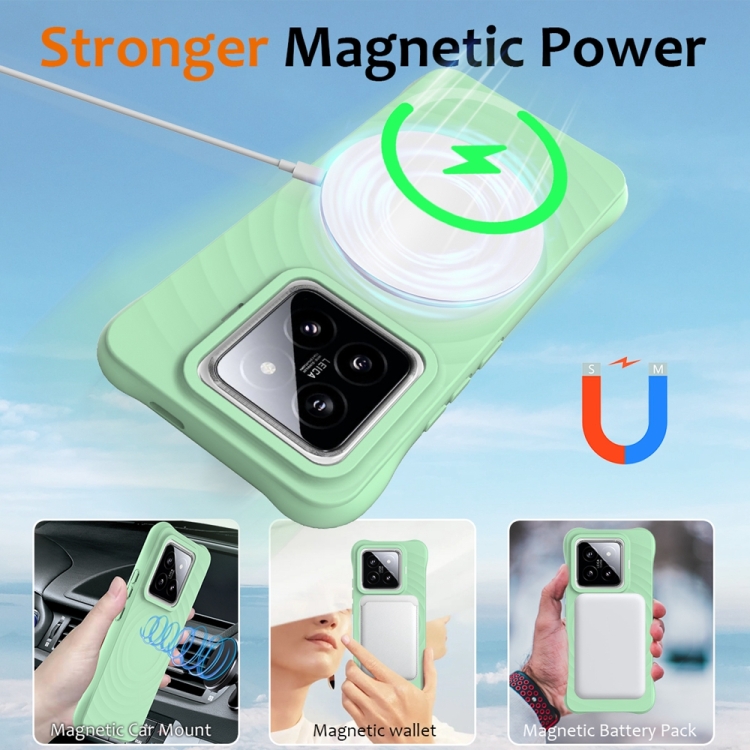 Para Xiaomi 14 Pro Wave Texture Magsafe Funda De Teléfono De Silicona Líquida Magnética (Verde)