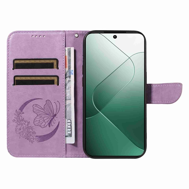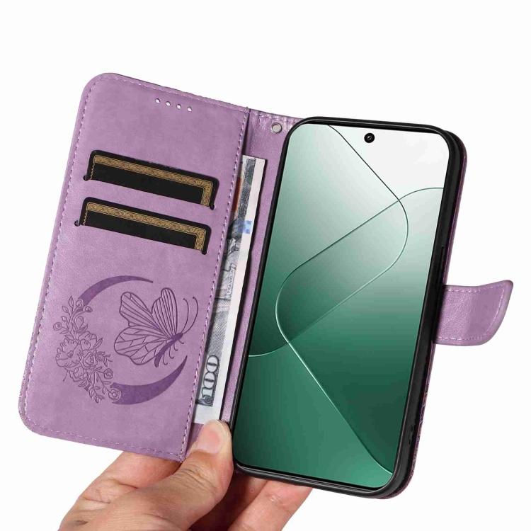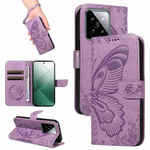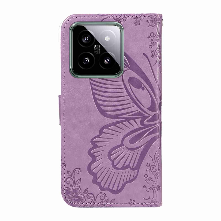 Para Xiaomi 14 Swallowtail Butterfly Funda De Teléfono De Cuero En Relieve (Púrpura)