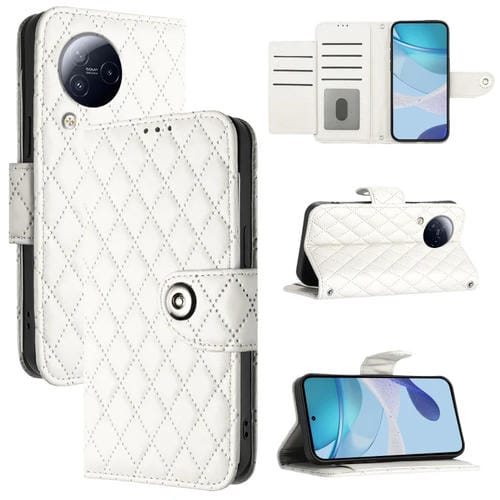 Para Xiaomi Civi 3 Funda de Cuero con Tapa con Textura Rómbica y Cordón (Blanco)