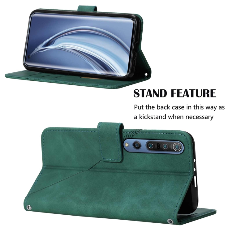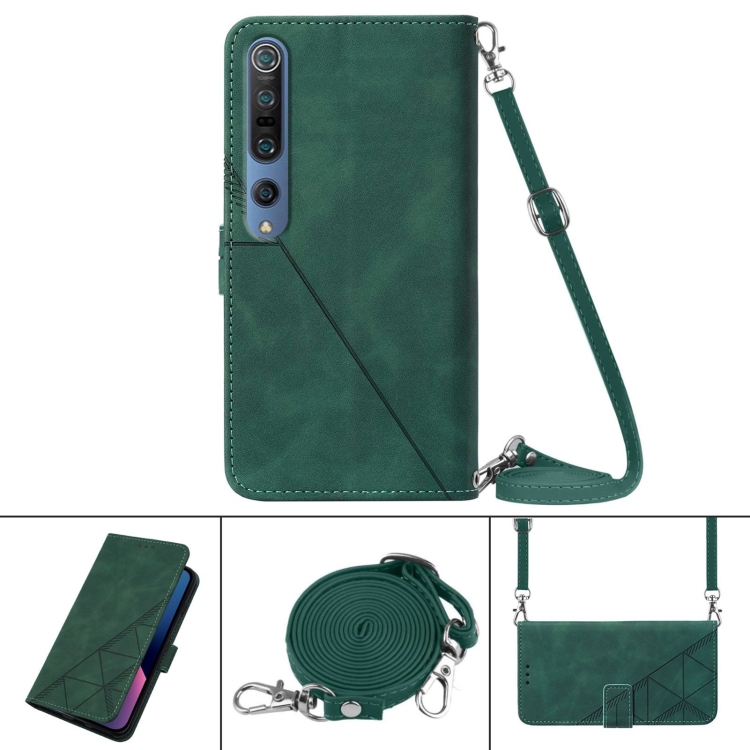 Para Xiaomi MI 10 5G / 10 PRO 5G CROSS CROSS 3D FLIP DE CUERO DE CUERO DE CUERO (verde oscuro)