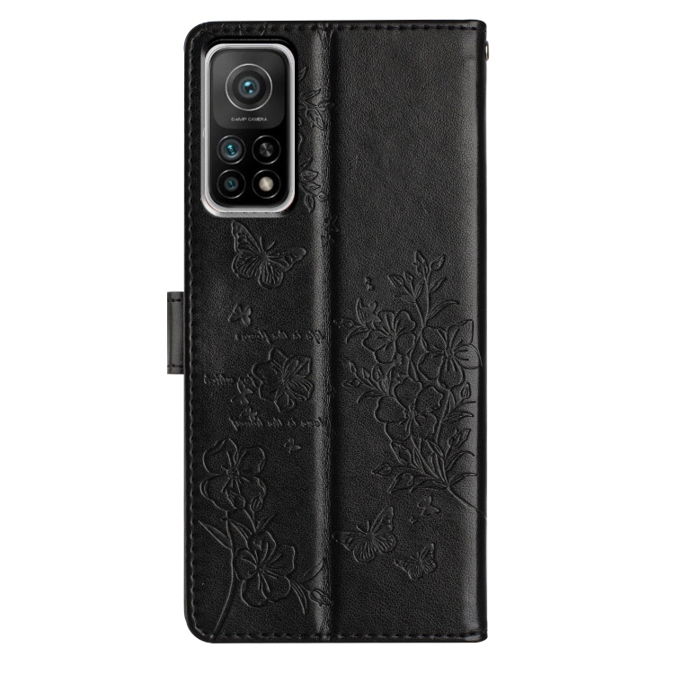 Para Xiaomi Mi 10T Pro 5G Funda de Cuero para Teléfono con Mariposas y Flores (Negro)