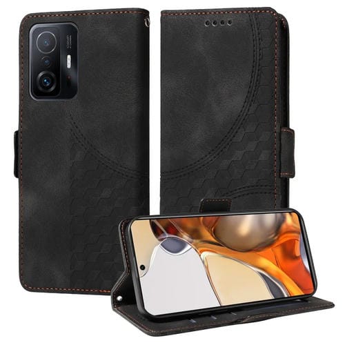 Para Xiaomi Mi 11T / 11T Pro Funda de Teléfono de Cuero Estrellado con Rombos En Relieve (Negro)