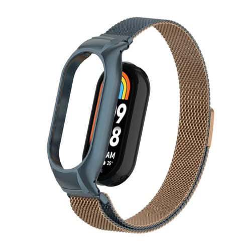 Caja de Metal Integrada + Banda Magnética Milanesa para Xiaomi Mi Band 8 (Gris Dorado)