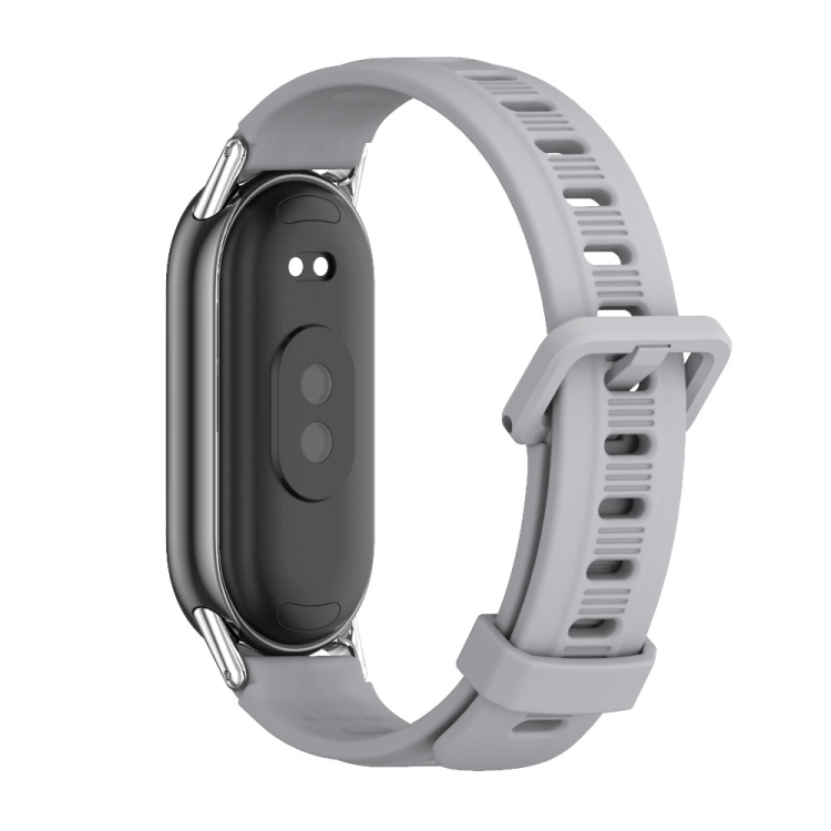 Banda de Reloj para Xiaomi Mi Band 8 Mijobs Silicona Transpirable con Orificio Plano (Gris + Plata)