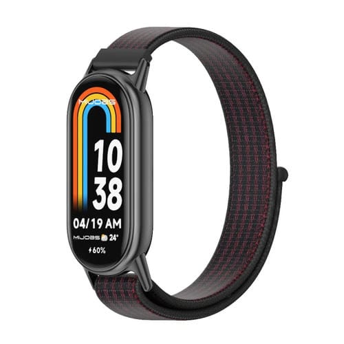Correa de Reloj para Xiaomi Mi Band 8 Mijobs Bucle de Nailon Transpirable (Negro Rojo)