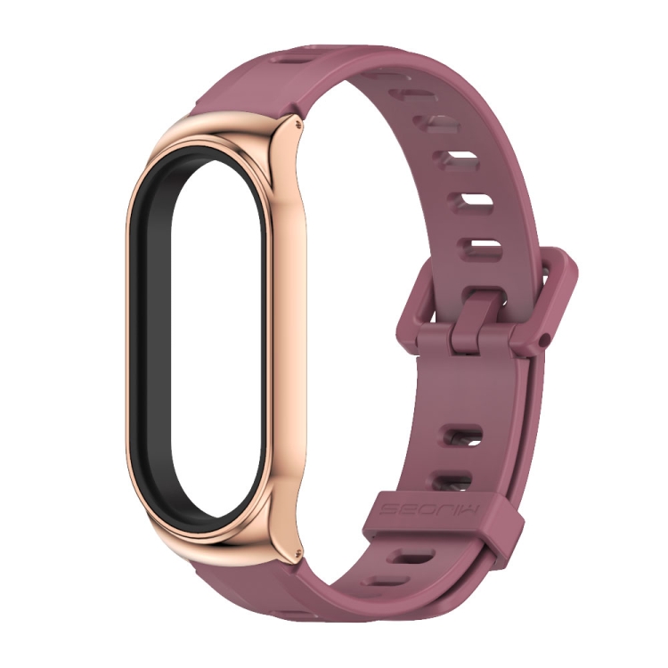 Estuche y Banda de Silicona para Xiaomi Mi Band 8 Mijobs Cs con Orificio Plano (Vino Rojo, Oro Rosa)