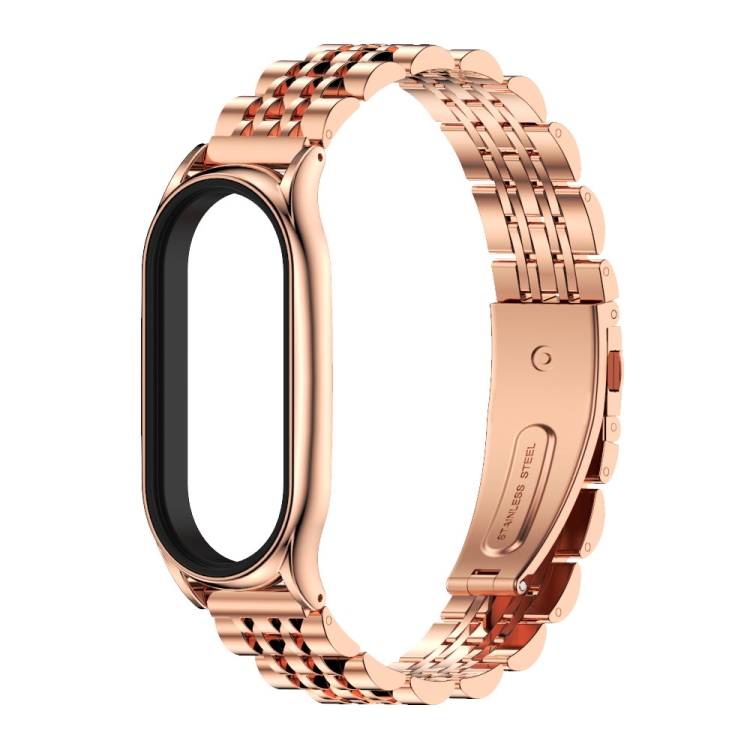 Correa de Reloj Xiaomi Mi Band 8 Mijobs Plus Case Seven Bead Metal Acero Inoxidable (Oro Rosa)