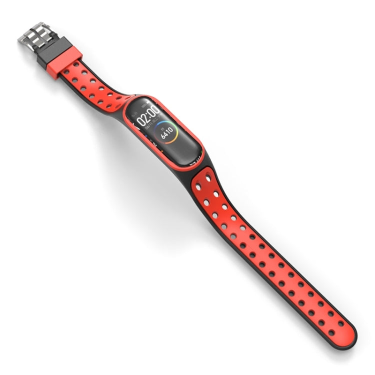 Para Xiaomi MI banda 5 silicona doble hebilla de reemplazo de la correa de la muñeca (negro + rojo)
