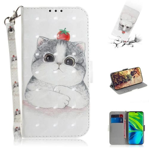 Para Xiaomi Mi Note10 Pro 3D Painting Funda de Cuero con Tapa Horizontal con Soporte y Ranura para Tarjeta y Billetera y Cordón (Gato Lindo)