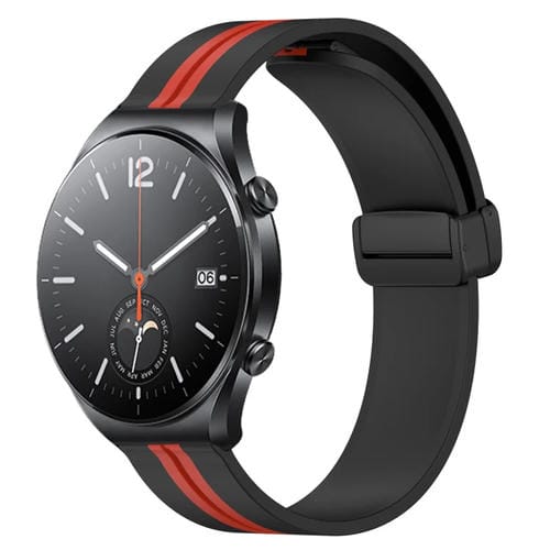 Correa de Reloj Xiaomi Mi Watch S1 22mm Silicona Cierre Magnético Plegable (Negro + Rojo)