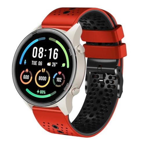 Banda de Reloj Xiaomi Mi Watch Sport 22mm Silicona Bicolor Perforada (Rojo + Negro)
