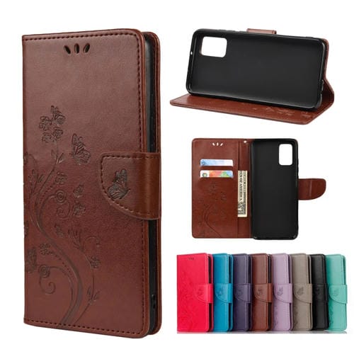Para Xiaomi Poco F3 Butterfly Flower Pattern Horizontal Flip Funda de Cuero con Soporte y Tragamonedas y Billetera (Marrón)