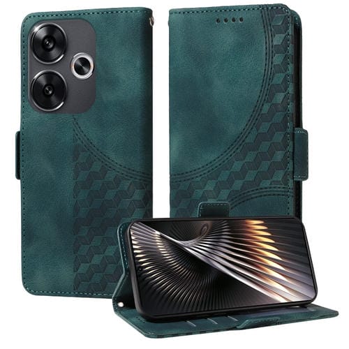 Para Xiaomi Poco F6 Funda para Teléfono de Cuero Estrellado con Rombos En Relieve (Verde)