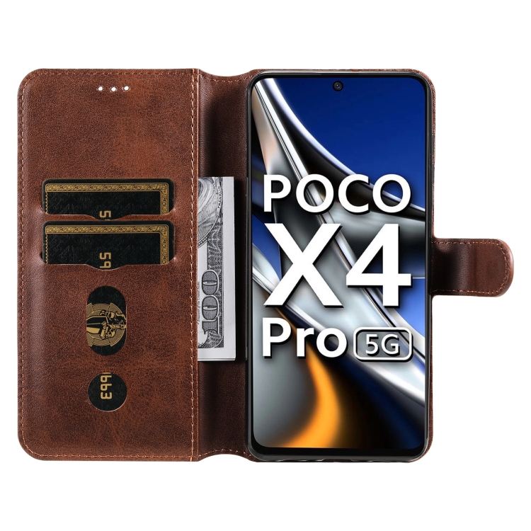 Para Xiaomi POCO X4 PRO 5G Classic Becerta Textura PU + TPU Funda de cuero Horizontal Flip (Marrón)